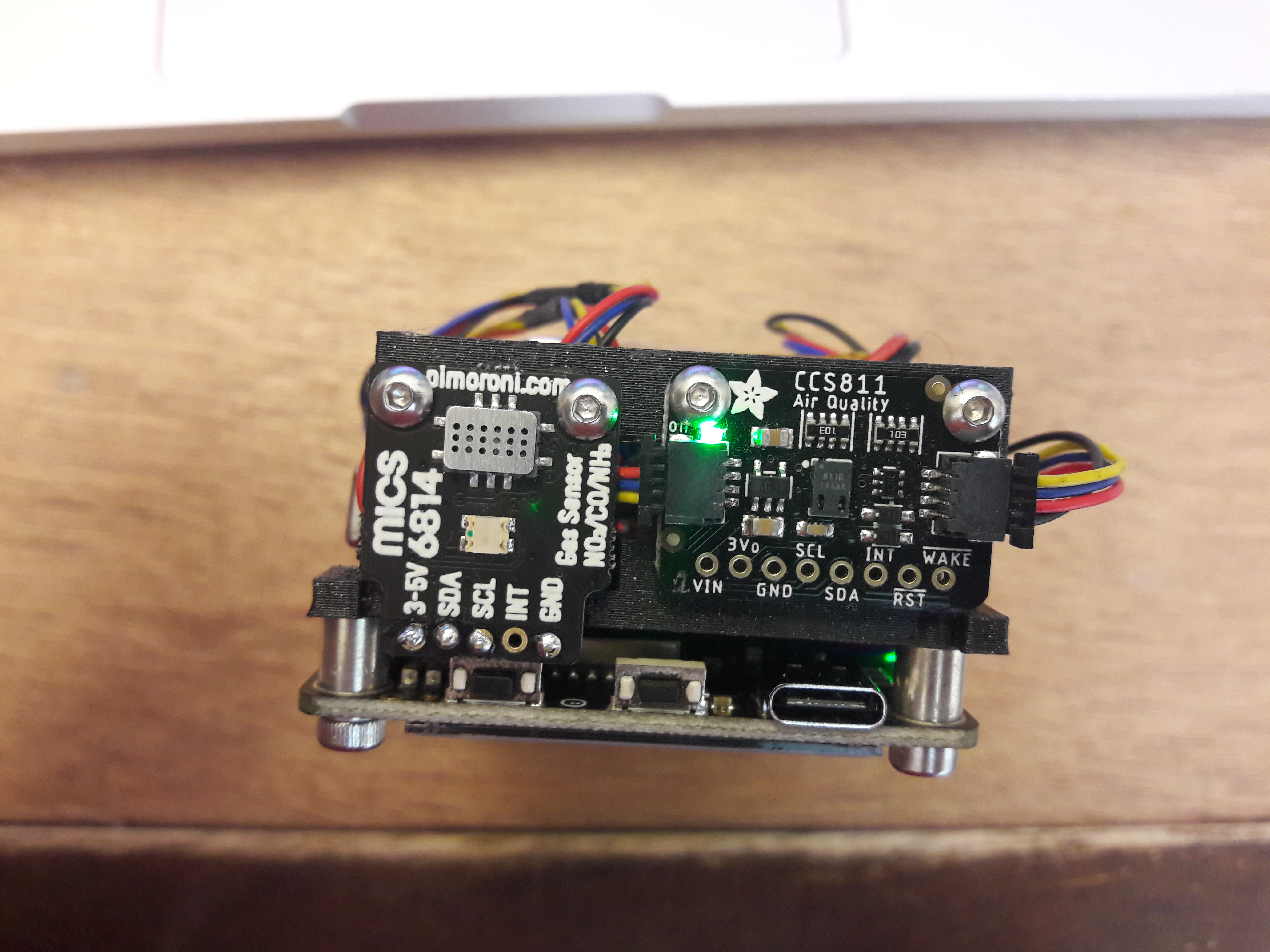 - BME688 4-in-1 Air Quality Breakout → Mostly a humidity/temp sensor, but also gives an air quality index. I believe the Adafruit brakeout was out of stock at the time, hence the choice of Pimoroni board instead.