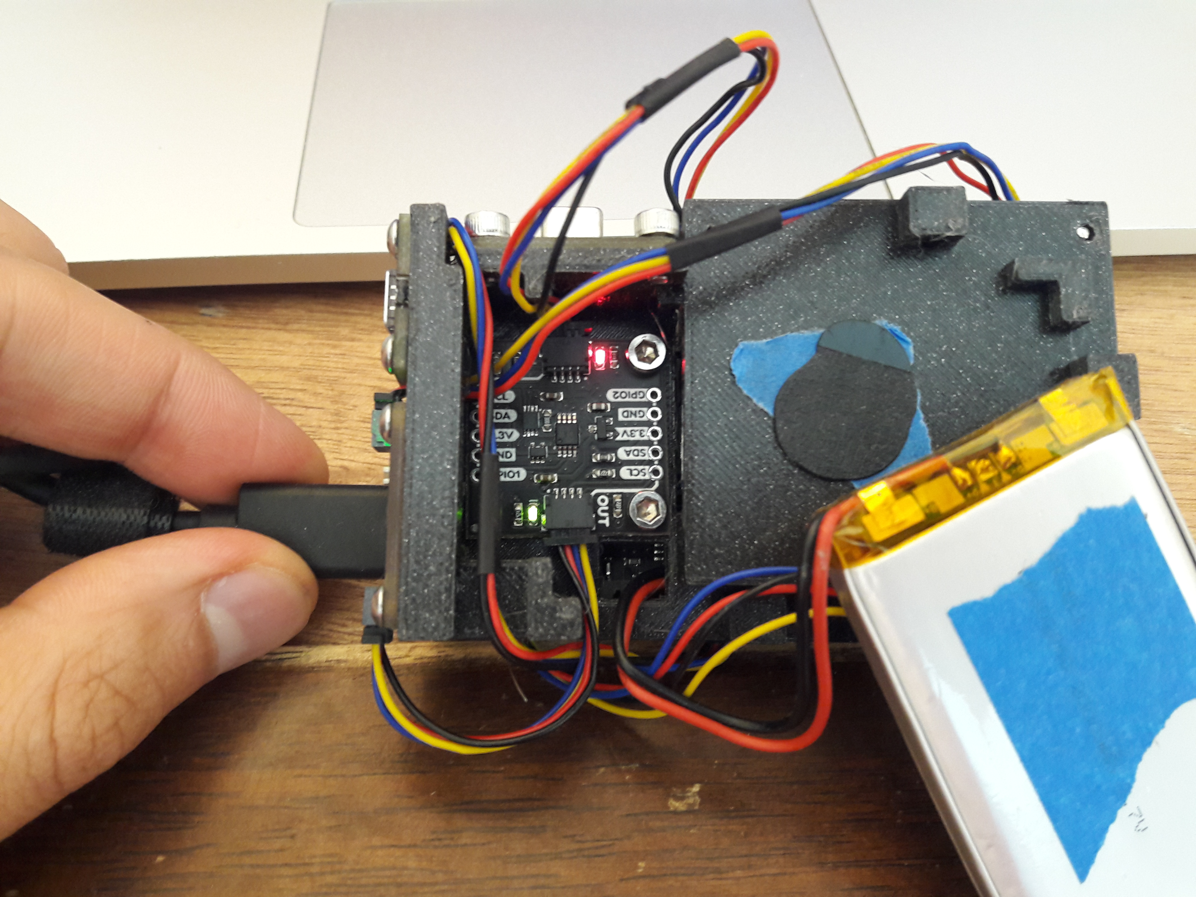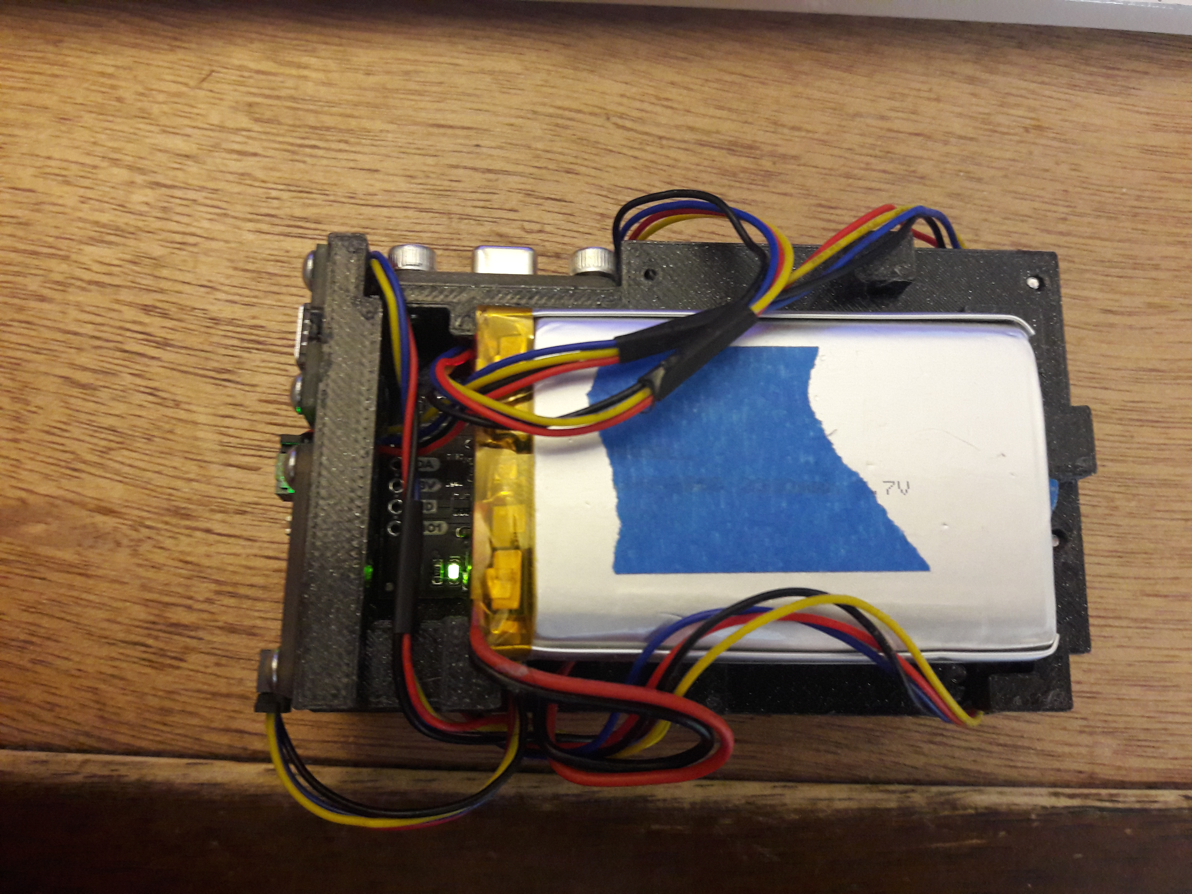 I also knew I wanted the battery and its connector to be easily accessible, to measure the current draw and to later add an energy harvesting circuit.