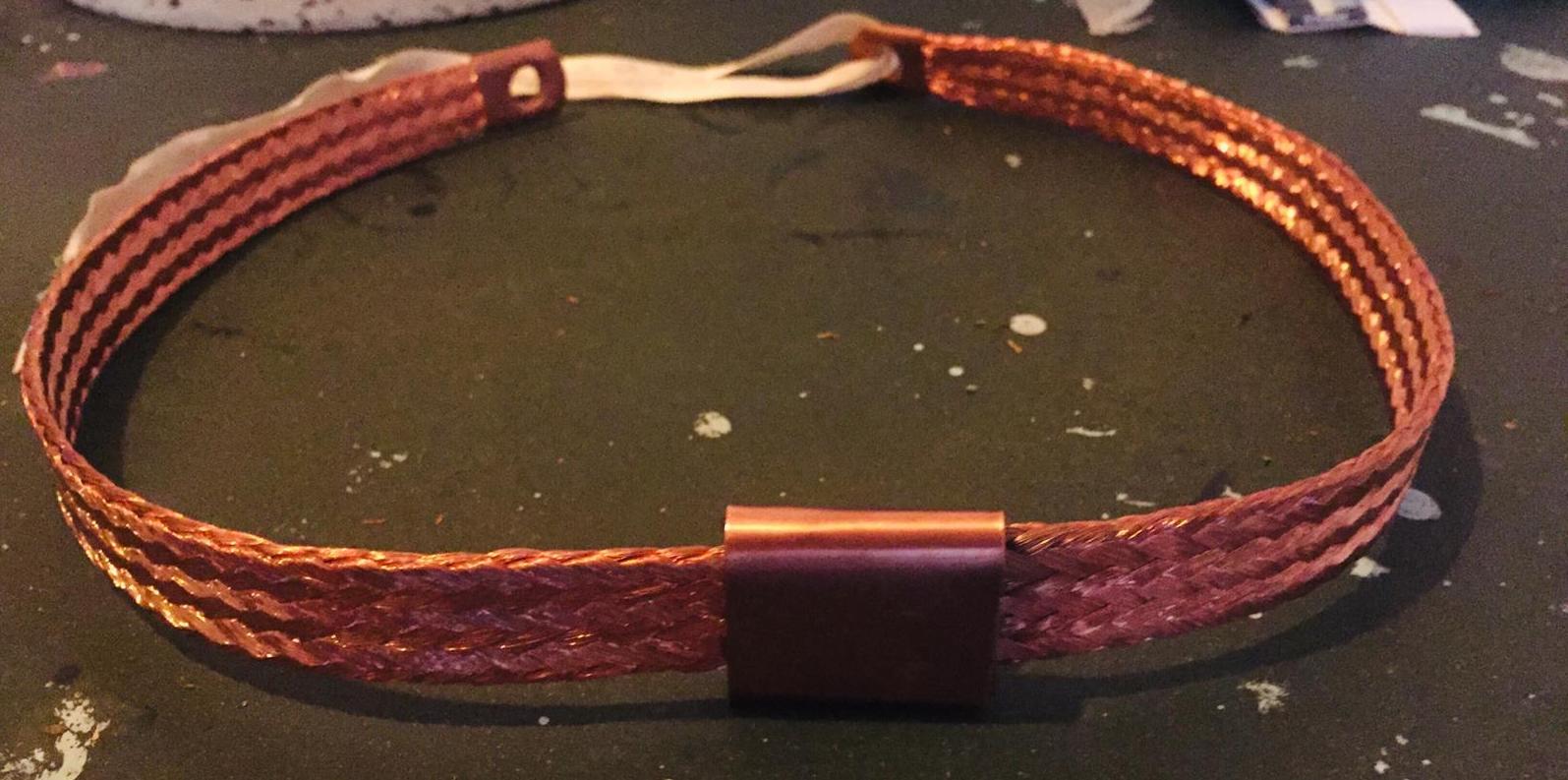 I also bought a copper braid made for jumping automotive batteries, to replace the current bracelet made of stainless steel (a poor conductor of heat). I did not test the new copper braid with the system, but it was surprisingly beautiful and I ended up making a fashionable belt out of it to offer to my sister-in-law...